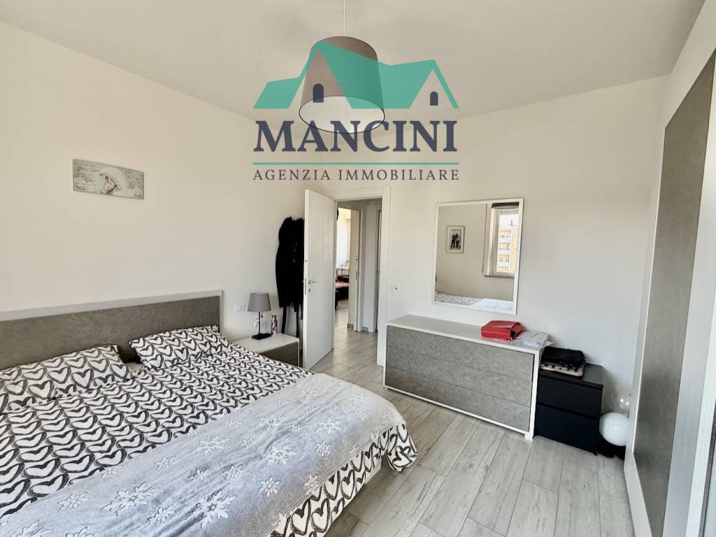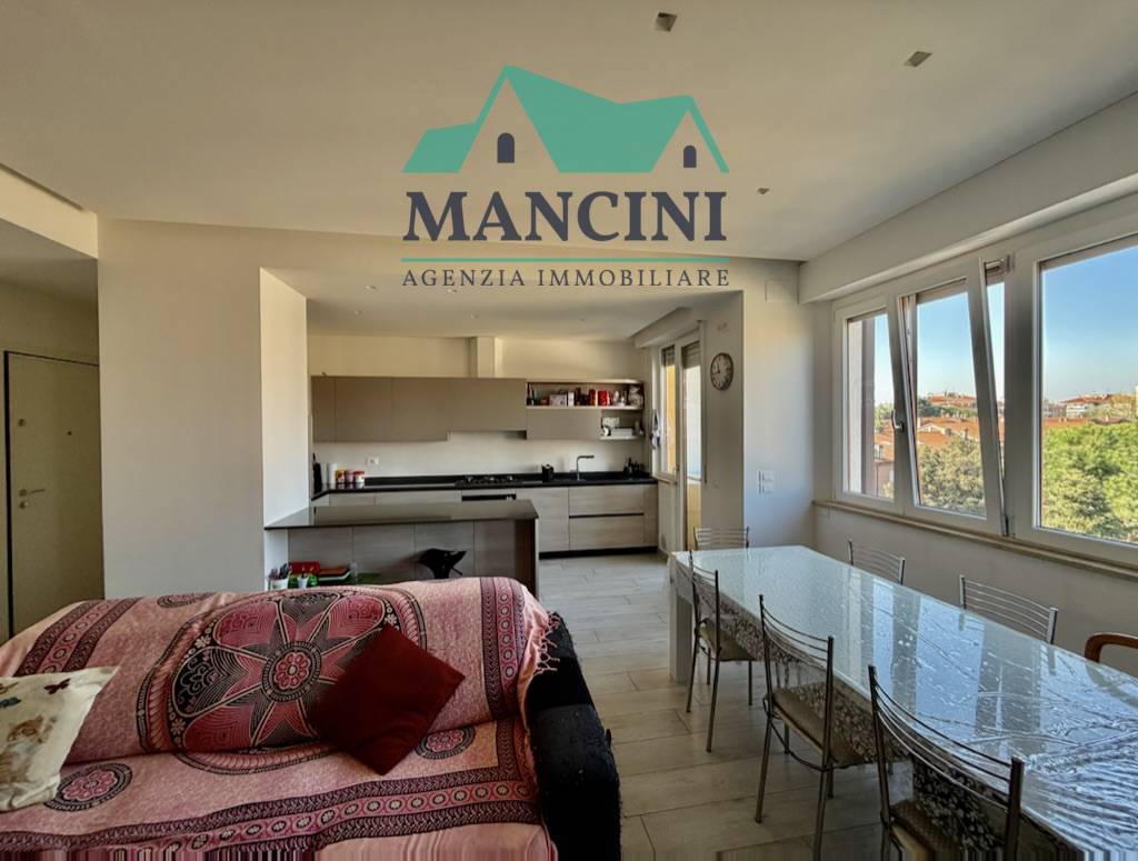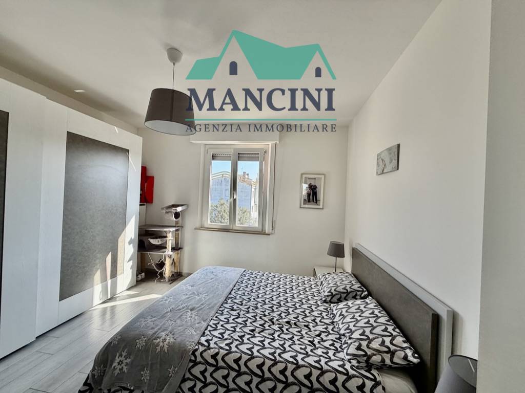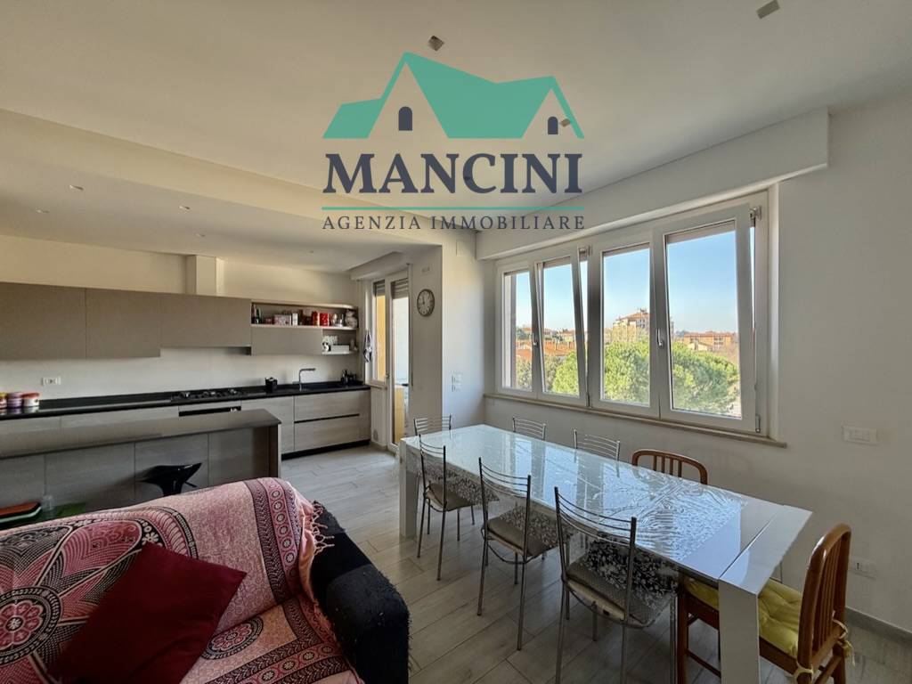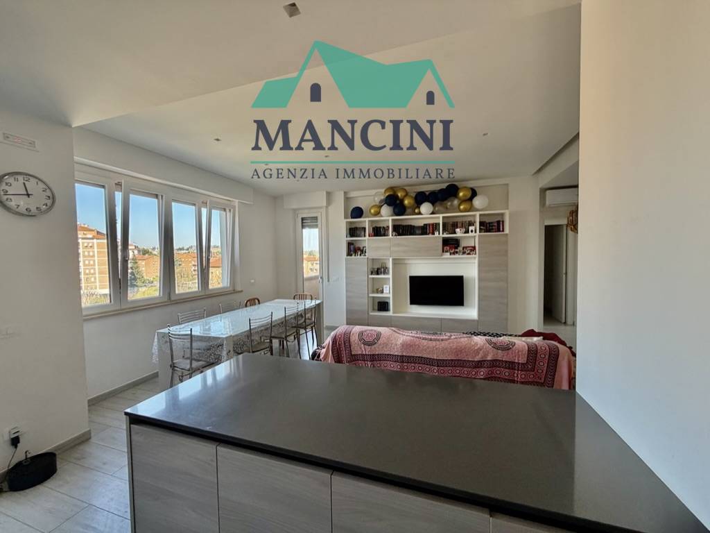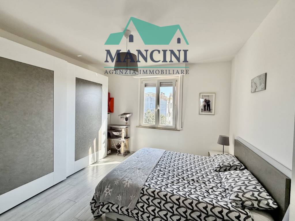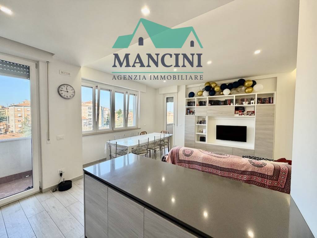 Luminoso Appartamento in Vendita a Jesi, situato al quarto piano di un edificio risalente al 1980 ristrutturato completamente nel 2018 completo di cappotto interno riscaldamento a pavimento infissi nuovi impianto idrico elettrico rifatto bagni nuovi con controsoffitto a faretti nella zona giorno.