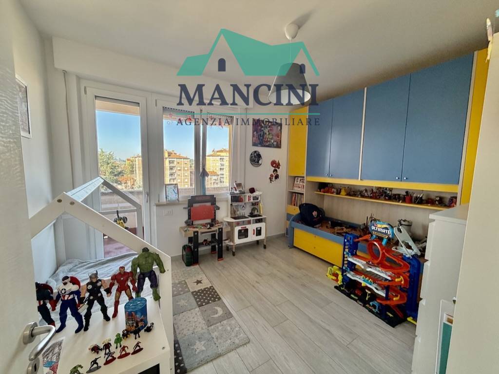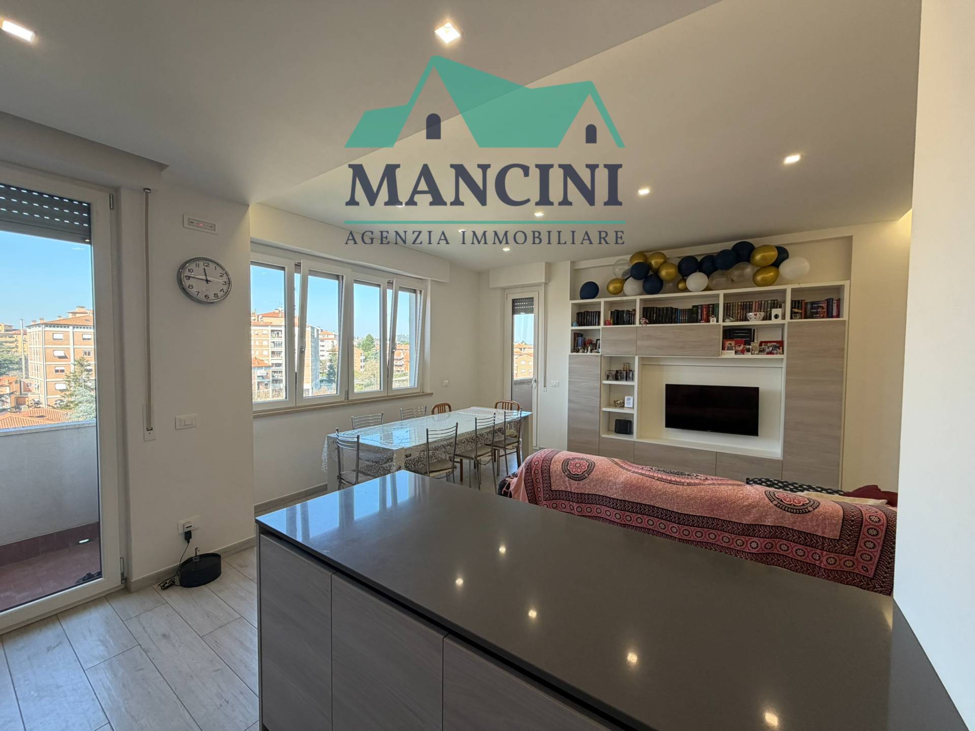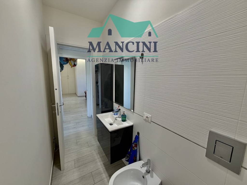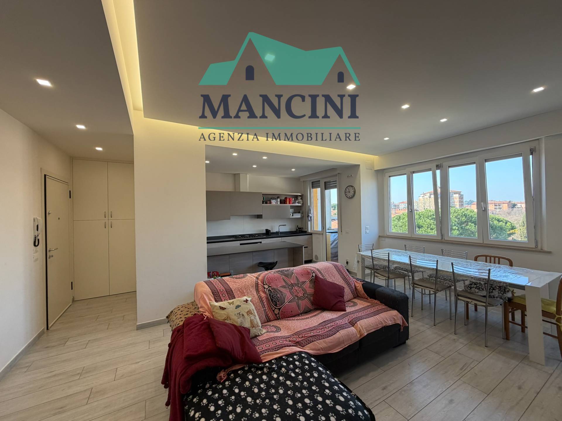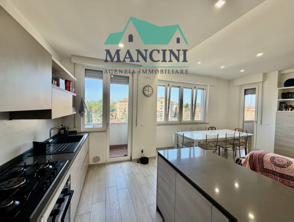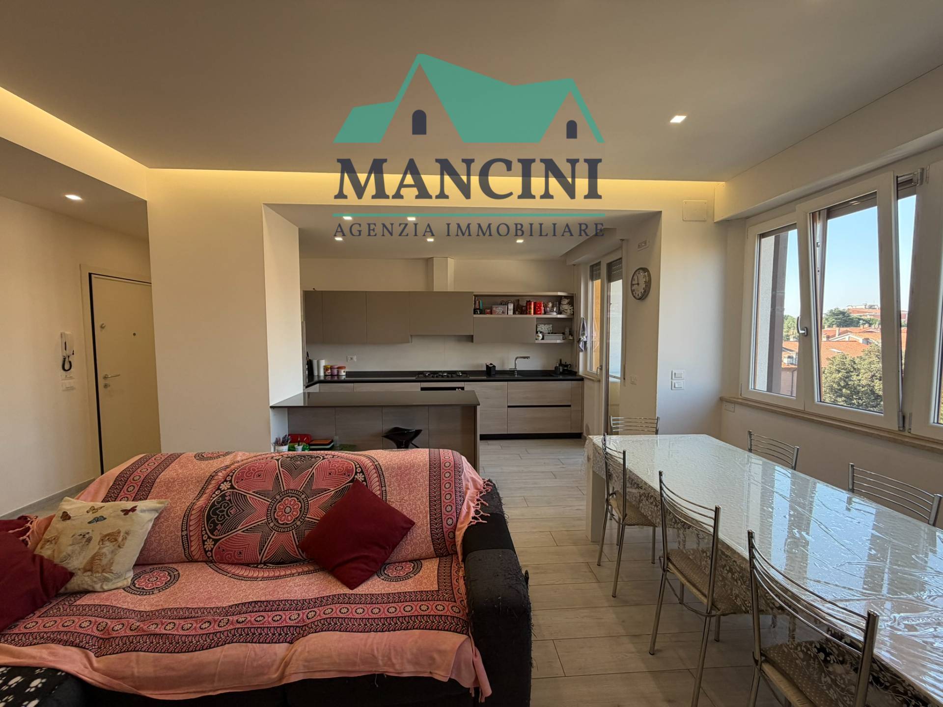 Luminoso Appartamento in Vendita a Jesi, situato al quarto piano di un edificio risalente al 1980 ristrutturato completamente nel 2018 completo di cappotto interno riscaldamento a pavimento infissi nuovi impianto idrico elettrico rifatto bagni nuovi con controsoffitto a faretti nella zona giorno.